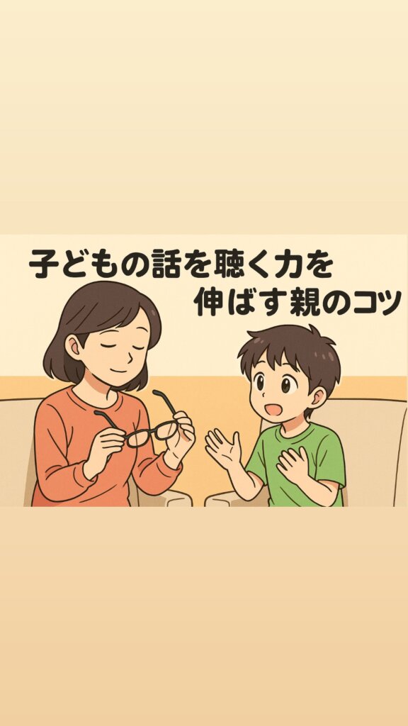 親が“黙って共感的に聴く”5ステップを解説。メガネを外し、反射・沈黙・安心で子どもの本音と自己肯定感を引き出し、親子の信頼関係を深める実践ガイド。 -